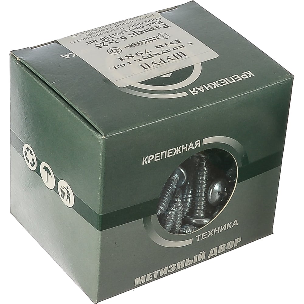 Шуруп с полукруглой головкой Метизный двор 6,3x 25 оцинкованный DIN 7981, 100 шт. 4690441025715