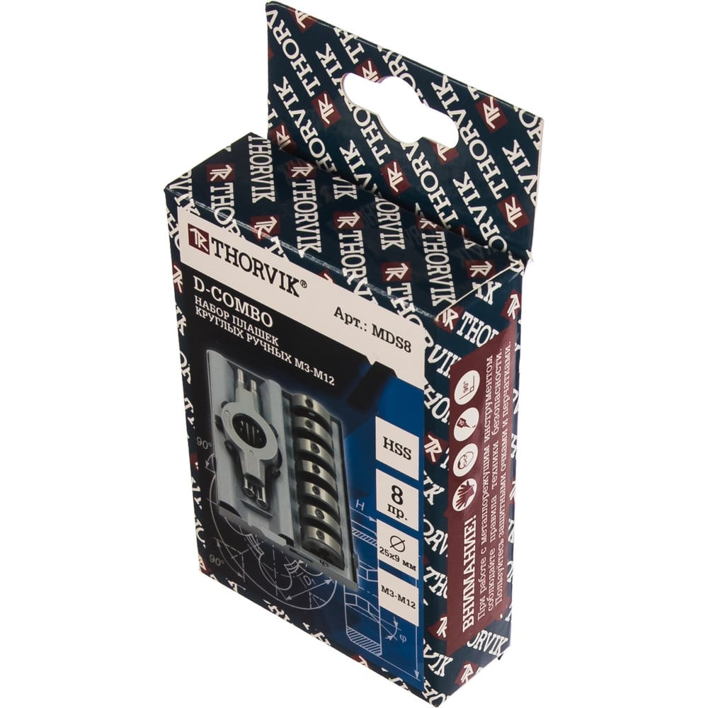 Набор круглых ручных плашек Thorvik D-COMBO М3-М12, HSS, 8 предметов MDS8 52885