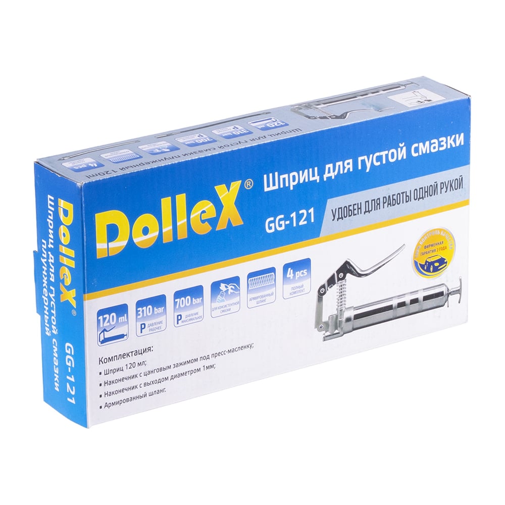 Пистолетный шприц для густой смазки плунжерный 120 мл для одной руки DolleX GG-121