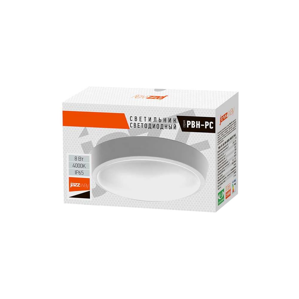 Светодиодный светильник Jazzway настенно-потолочный "Банник" PBH-PC-OA 8Вт 4000К белый IP65 ЖКХ пылевлагозащитный 1024565
