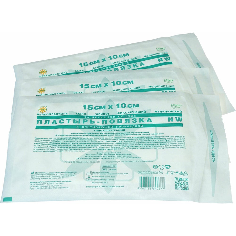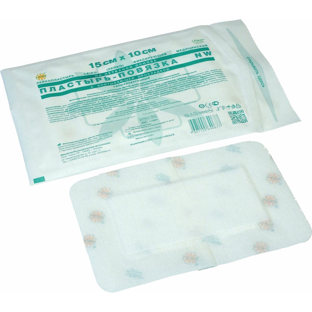 Послеоперационная пластырь-повязка LEIKO 15x10 см на нетканой основе со впитывающей прокладкой 630274