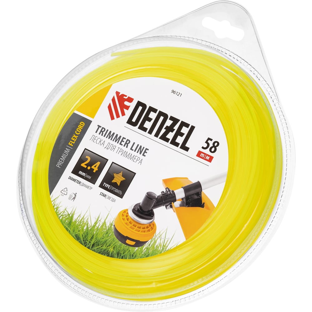 Леска для триммера звезда 2,4 мм х58 м блистер FLEX CORD DENZEL 96121