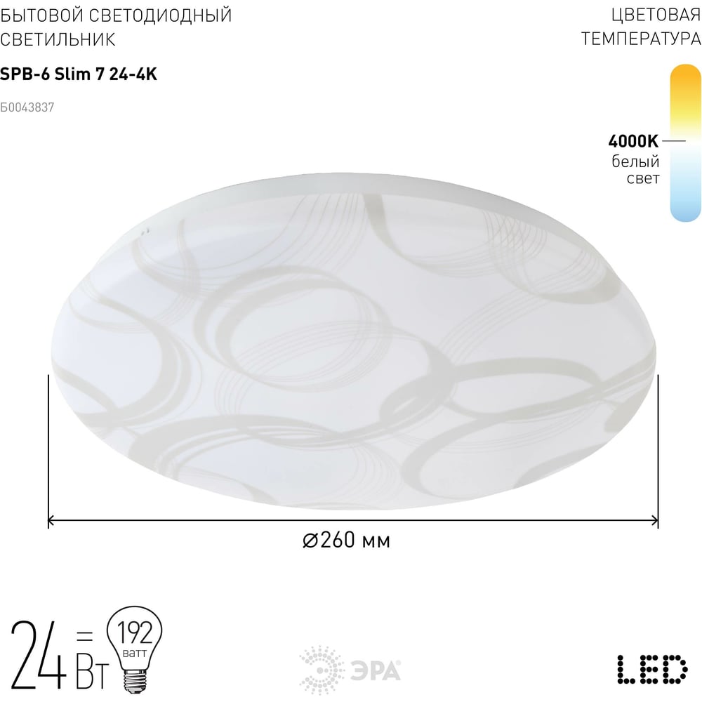 | Цветность | естественный белый (3300-5000 К) |