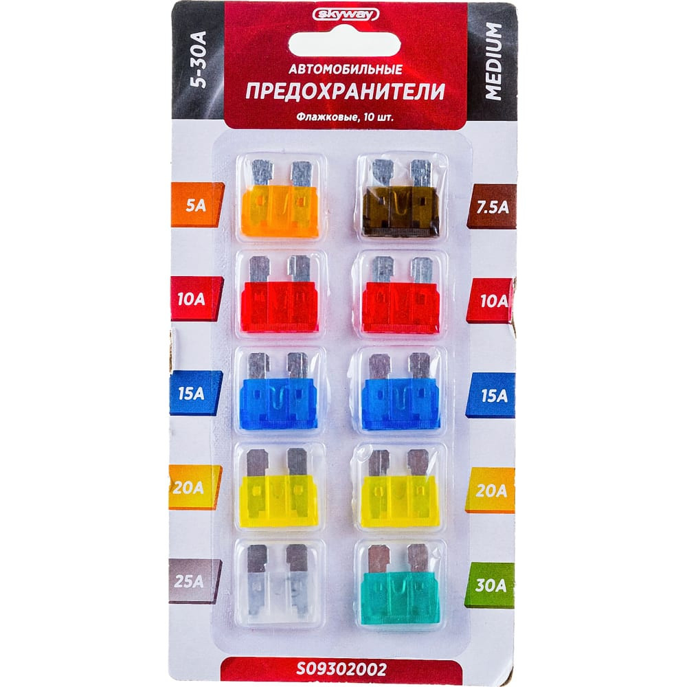 Предохранитель SKYWAY MEDIUM, флажковый, 10 шт., 5-30А, блистер S09302002