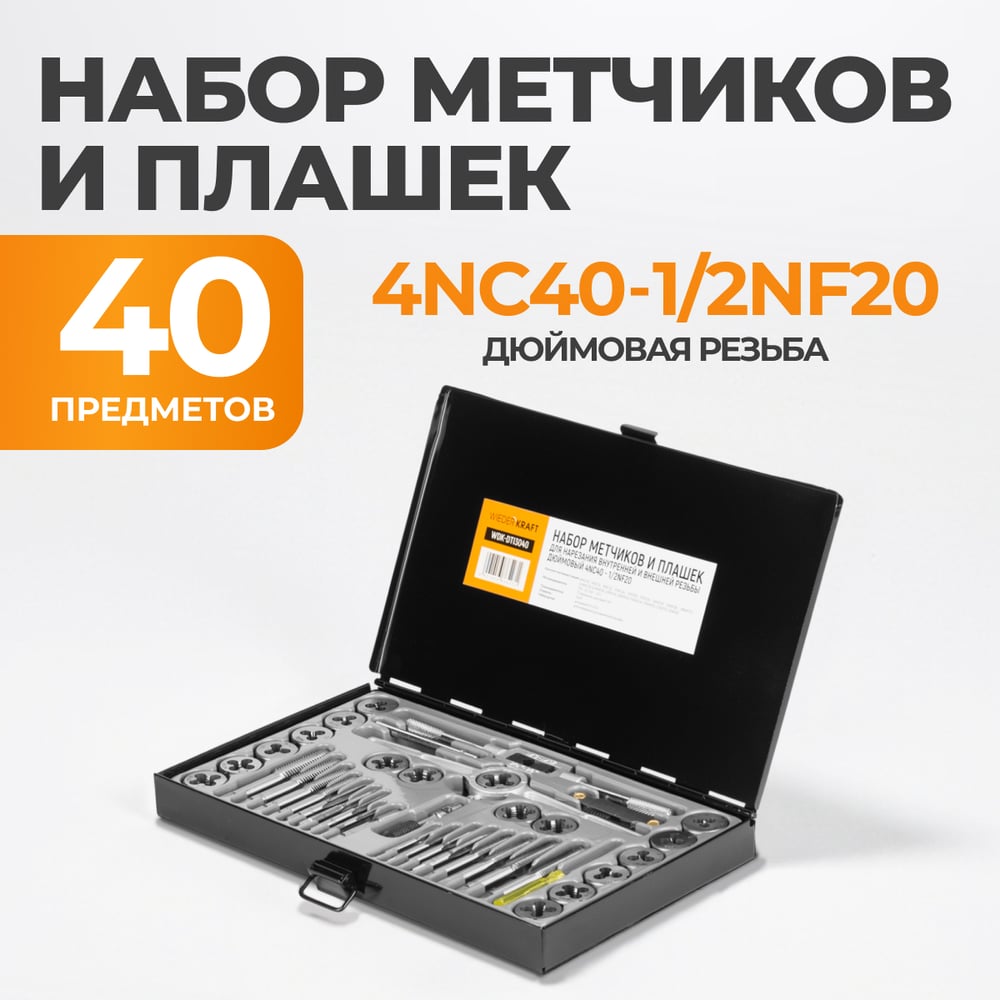Набор метчиков и плашек 4NC40-1/2NF20 WIEDERKRAFT 40 предметов, дюймовая резьба WDK-DTI3040