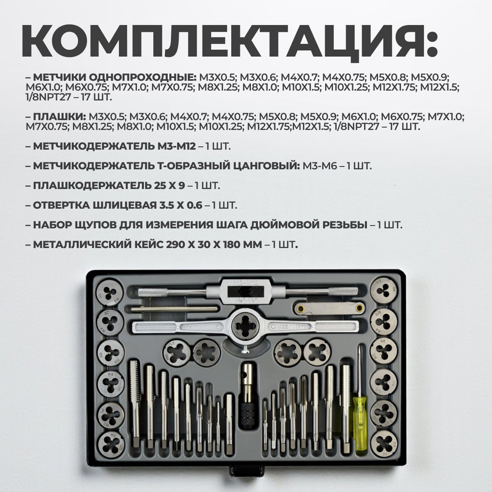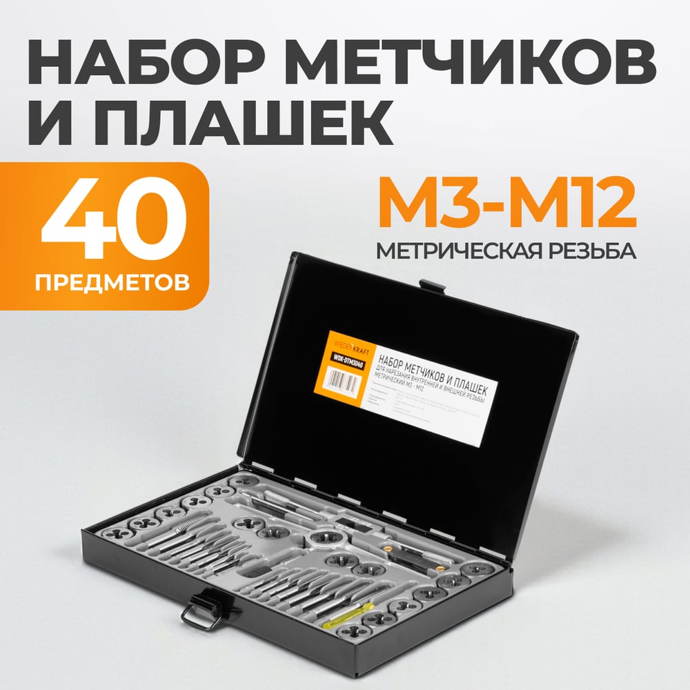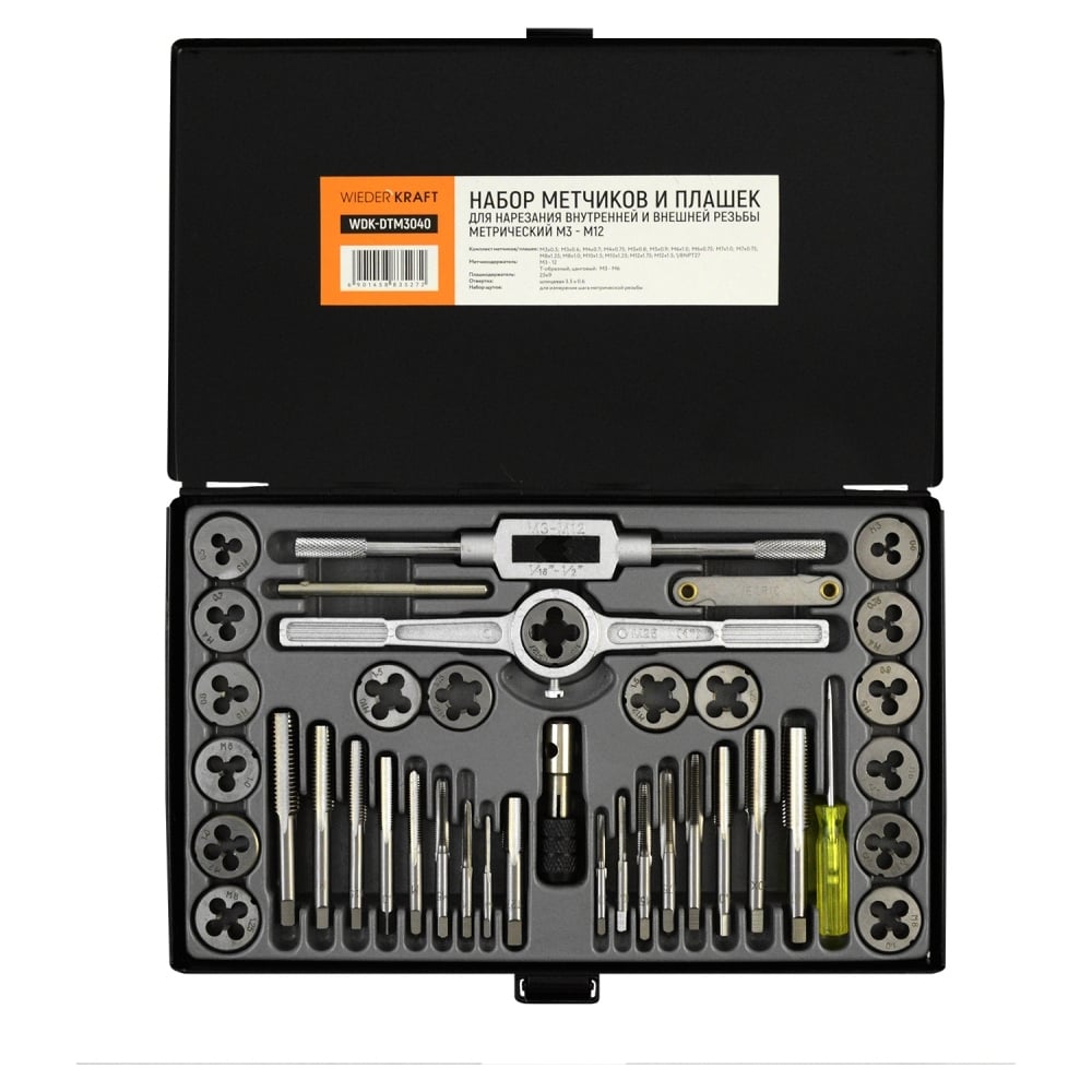 Набор метчиков и плашек М3-12 WIEDERKRAFT 40 предметов, метрическая резьба WDK-DTM3040