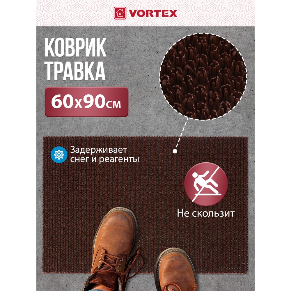 Коврик 60х90 см VORTEX ТРАВКА на противоскользящей основе темно-коричневый 24105
