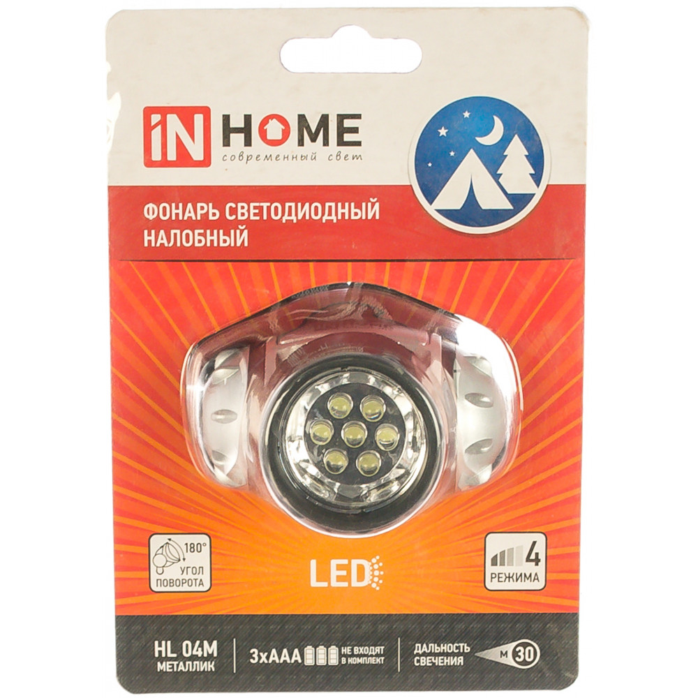 IN HOME Фонарь налобный HL 04M 7LED 3ААА 4 реж МЕТАЛЛИК 4690612031804