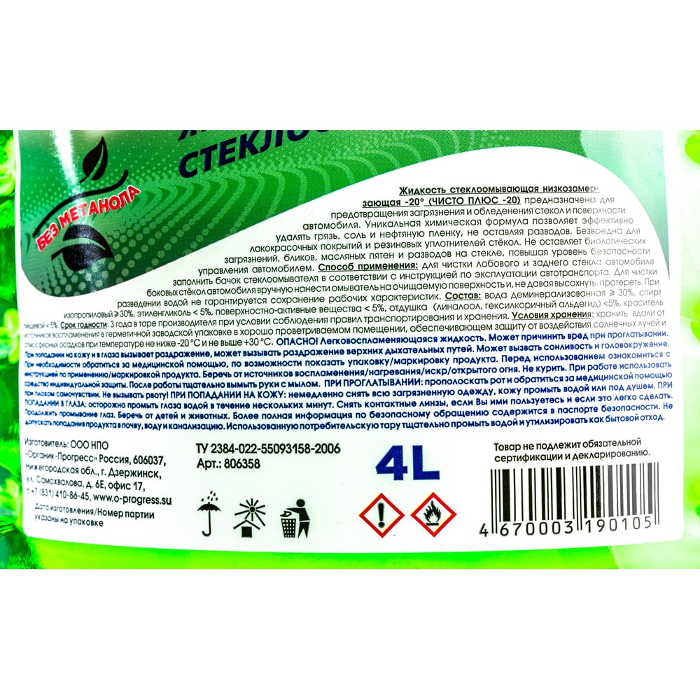 Стеклоомывающая жидкость Sintec "Чисто Плюс" -20 С 4л ПЭТ 806358