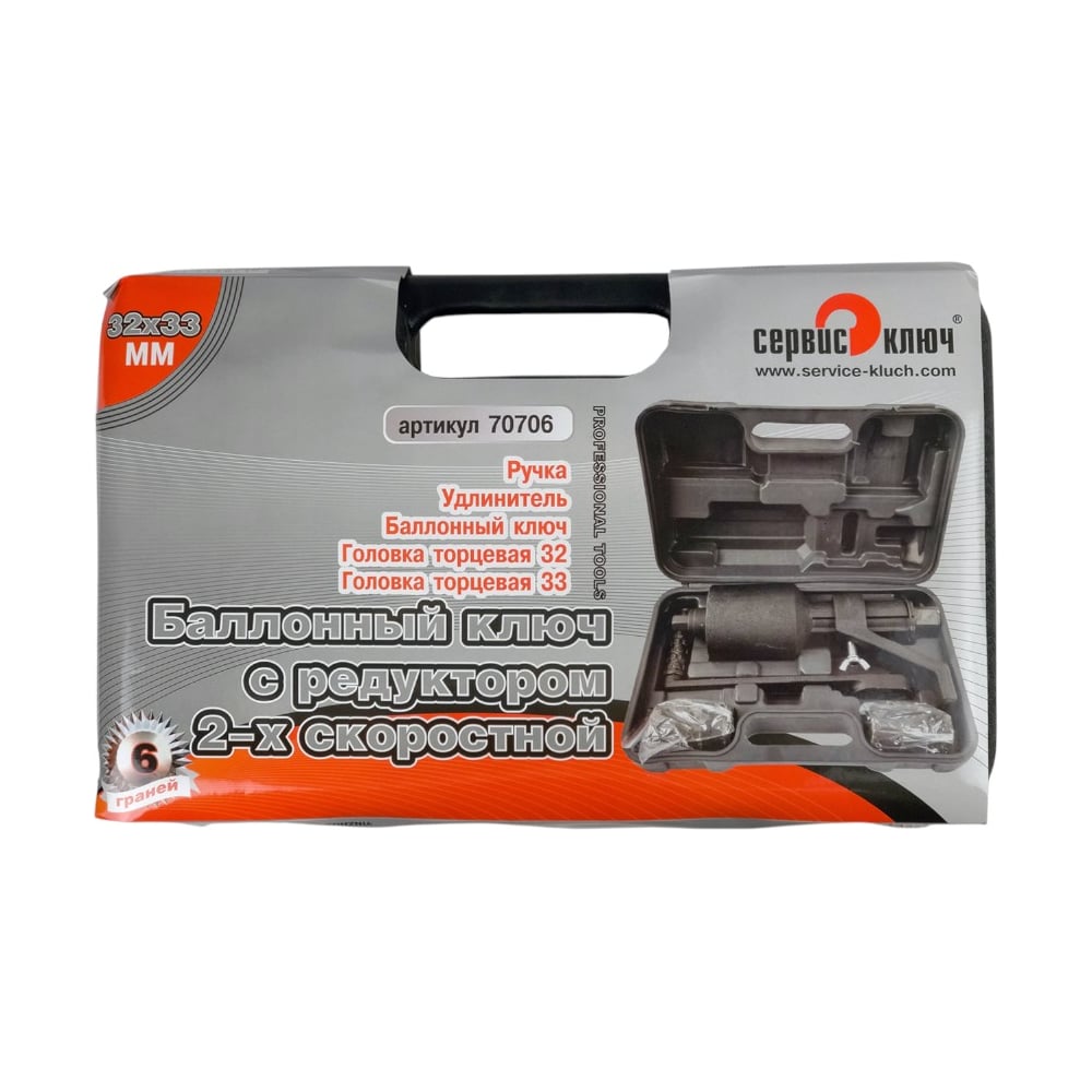 Баллонный ключ Сервис Ключ с редуктором, 2-х скоростной, 32х33 70706