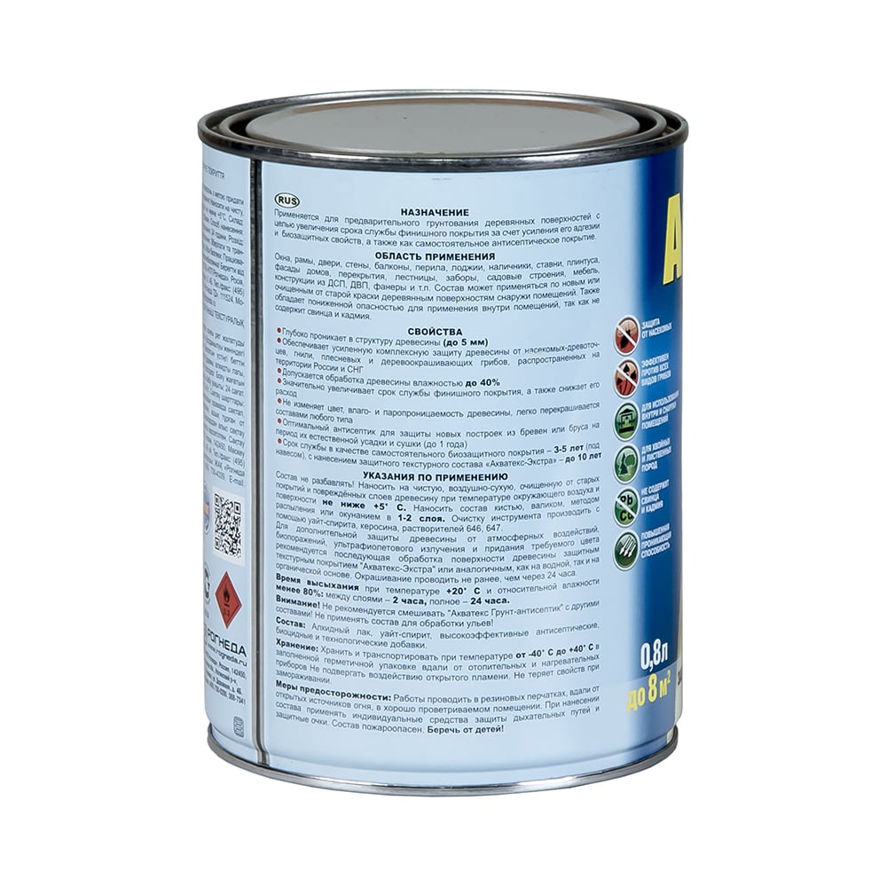 | Состав | алкидные смолы, уайт-спирит, высокоэффективные антисептики, фунгициды и инсектициды, технологические добавки |
