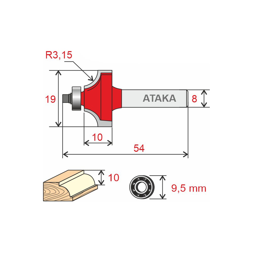 Фреза кромочная калевочная (19х8х10 мм) Атака 8140970