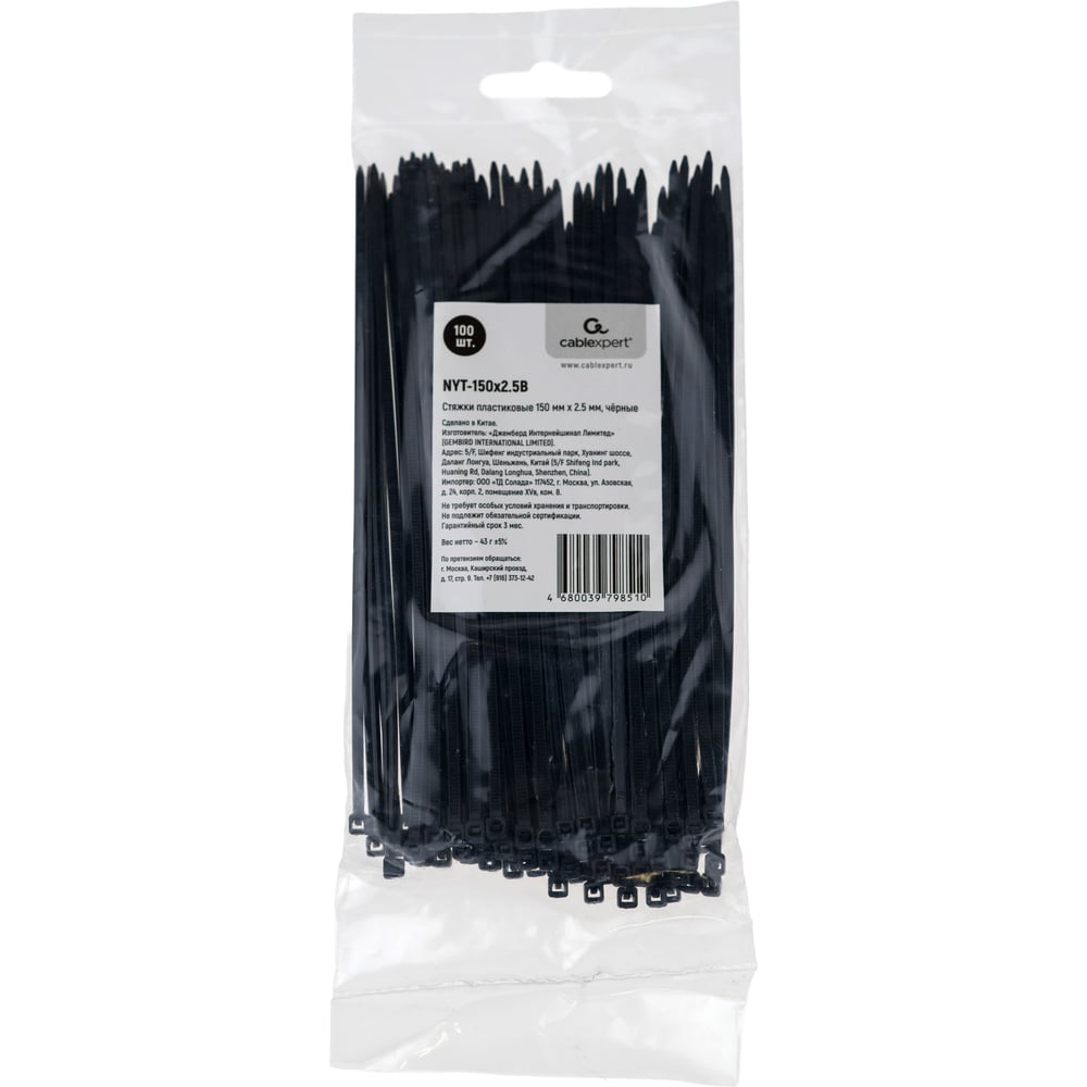 Пластиковые стяжки Cablexpert 150 мм х 2.5 мм чёрные 100шт NYT-150x2.5В