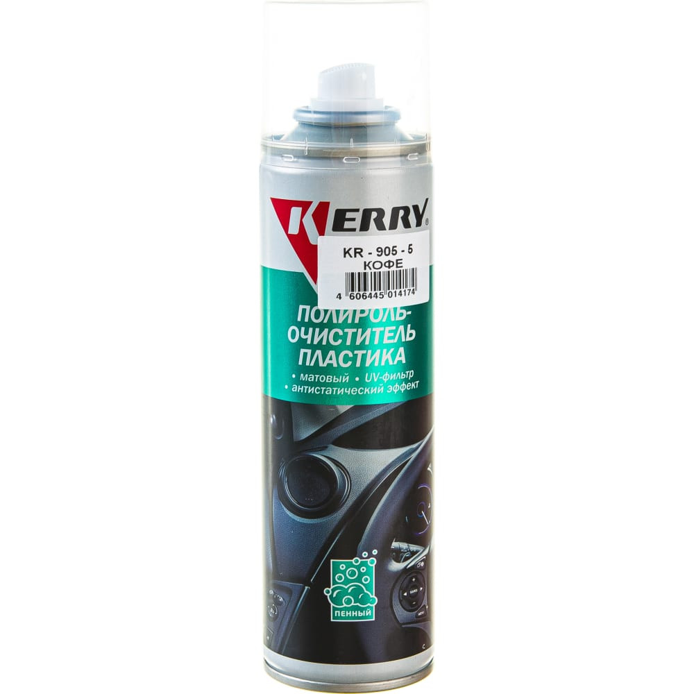 Пенный полироль-очиститель для пластика салона KERRY с матовым эффектом, кофе, аэрозоль, 335 мл 11604737