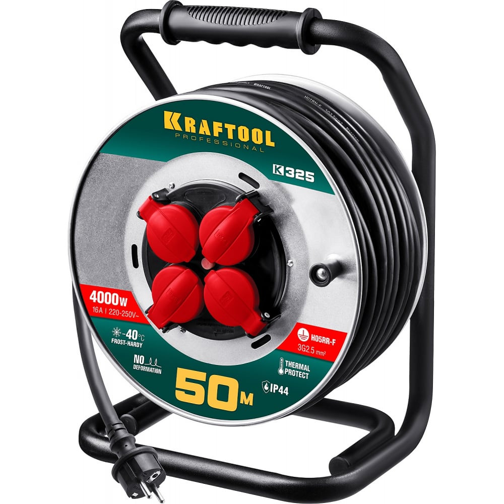 KRAFTOOL K-325 Силовой удлинитель на стальной катушке 50м, 4000Вт, IP44, 55086-50