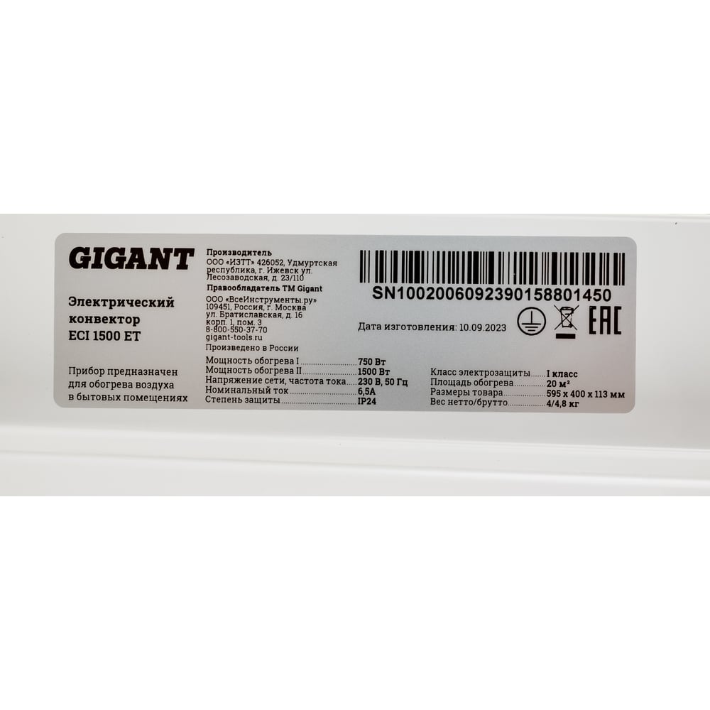 Электрический конвектор Gigant ECI 1500 ET