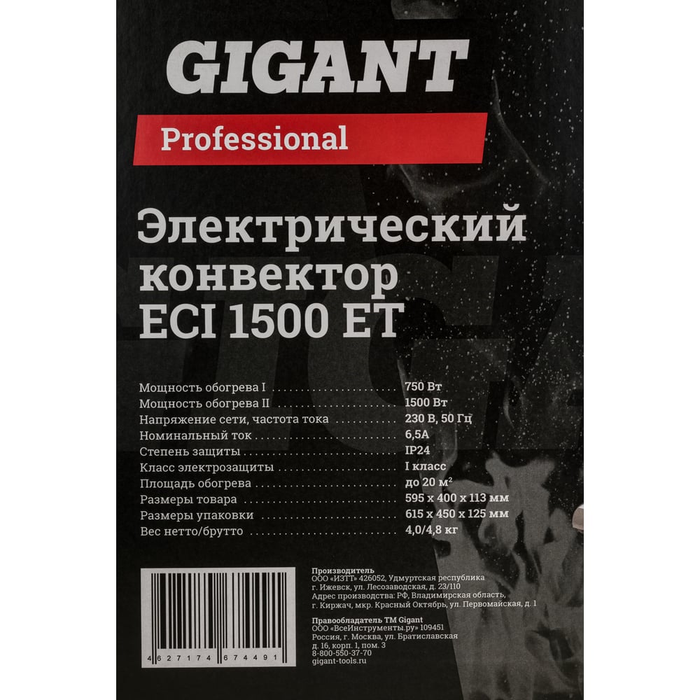 Электрический конвектор Gigant Professional ECI 1500 ET