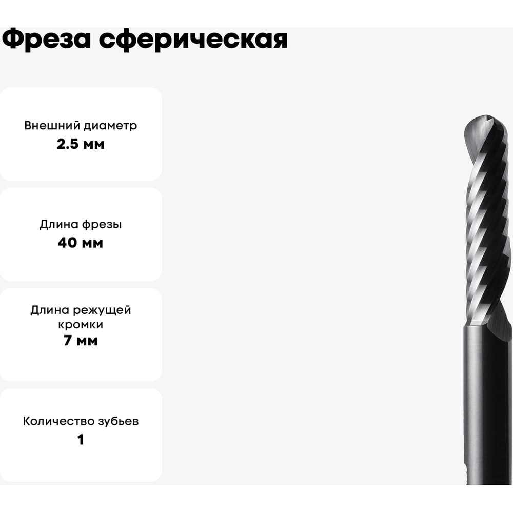 Фреза сферическая однозаходная (2.5x7x40x3.175 мм; Z=1) CUT2 20136