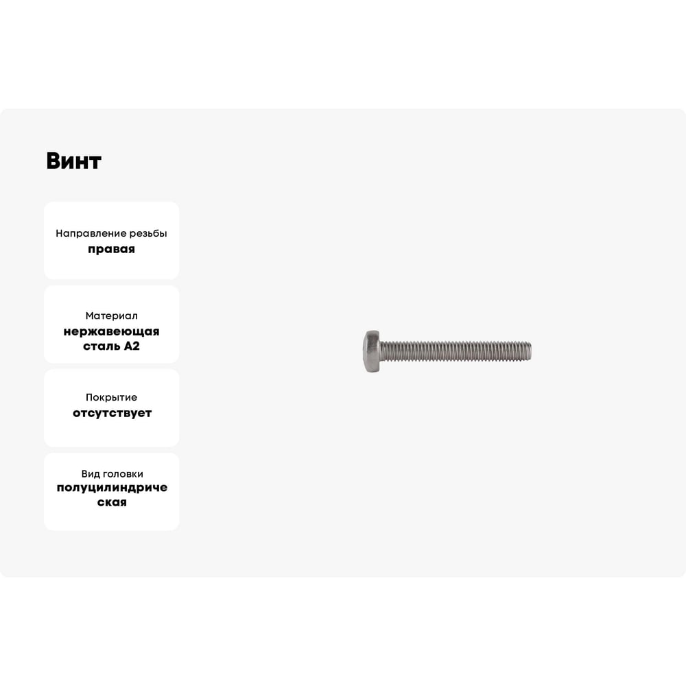 Винт КРЕП-КОМП полуцилиндрическая головка, нержавейка, DIN7985, А2, 8х35, 10 шт. вцн835мф