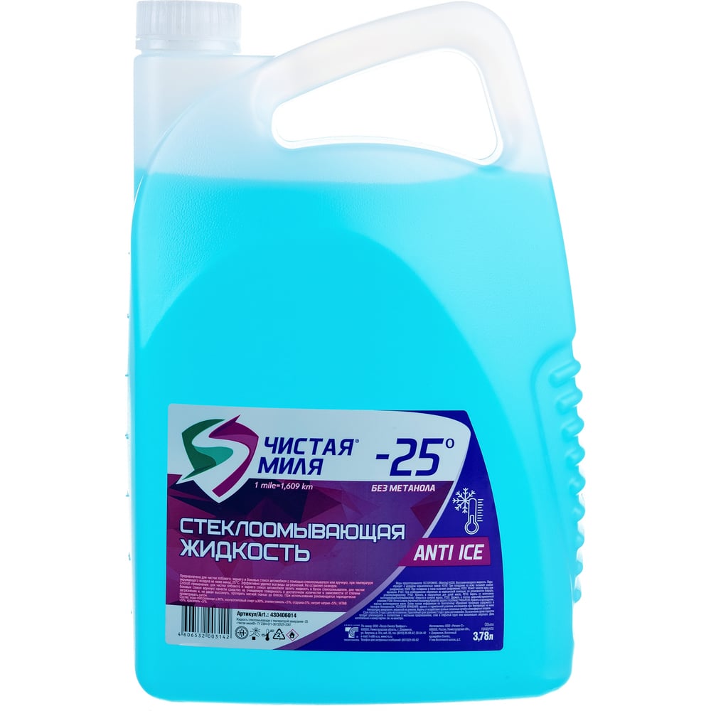 Зимняя жидкость в бачок омывателя Чистая Миля -25 C, 3.78 л 430406014