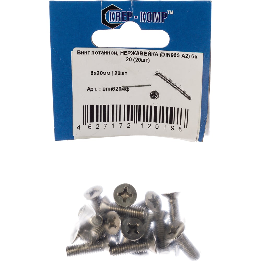 Потайной винт КРЕП-КОМП нержавейка, DIN965 А2 6х20 20шт впн620мф