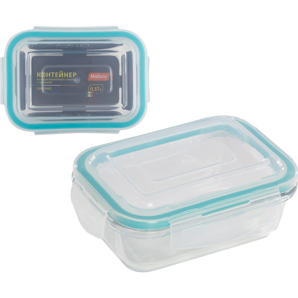 Контейнер Mallony DIAFANO 370 мл из жаропрочного стекла с крышкой из пластика, прямоугльный температура -20 до +200 С 5470