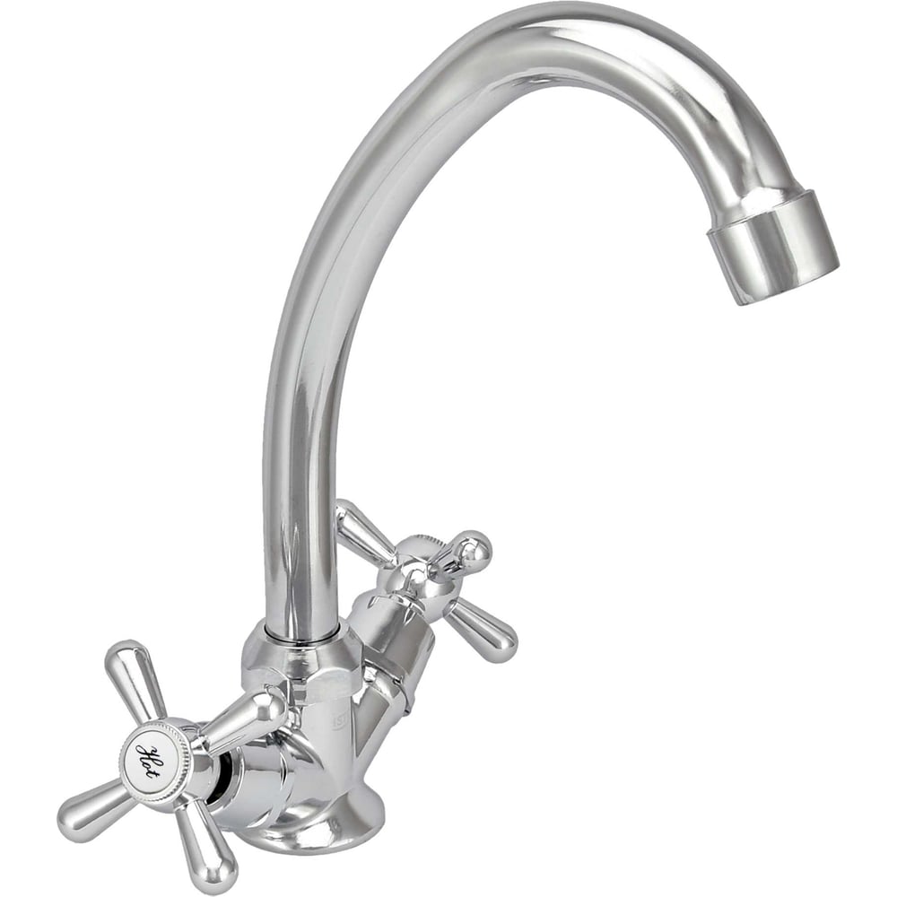 Смеситель для мойки Istok life двуручный, с поворотным изливом, керамическая кран-букса, гайка 0402.437