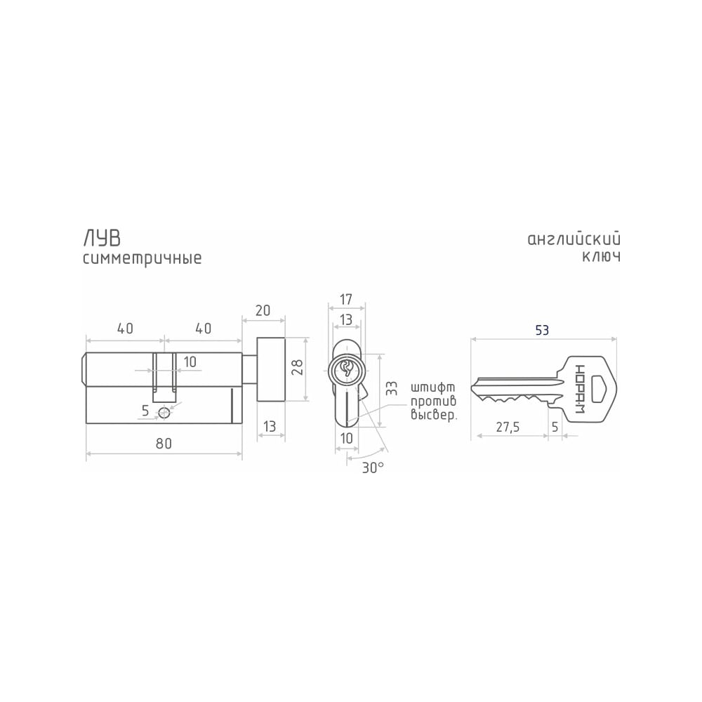 Цилиндровый механизм НОРА-М ЛУВ-80 40-40 хром Х 5341