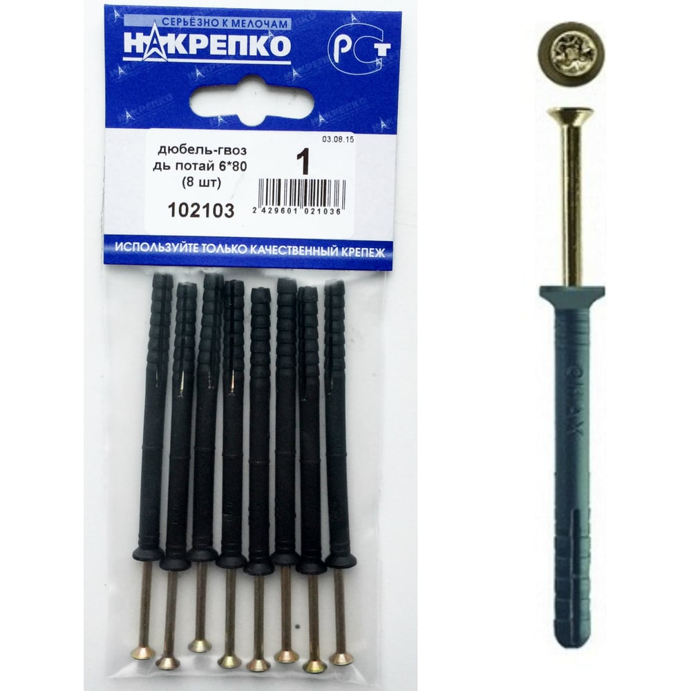 Потайной дюбель-гвоздь НАКРЕПКО 6х80 (8 шт.) 102103