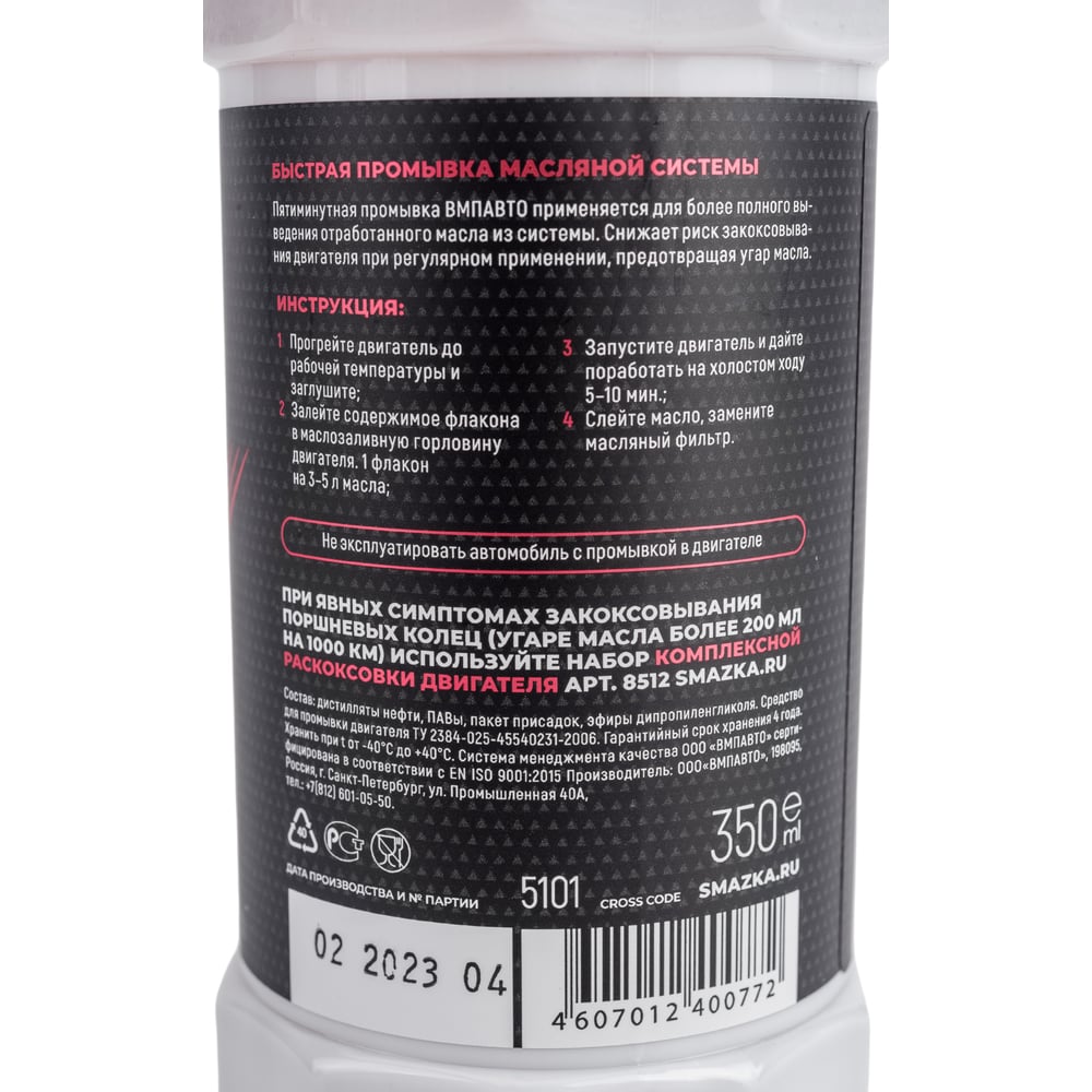 Промывка двигателя ВМПАВТО быстрая, 350 мл, флакон 5101