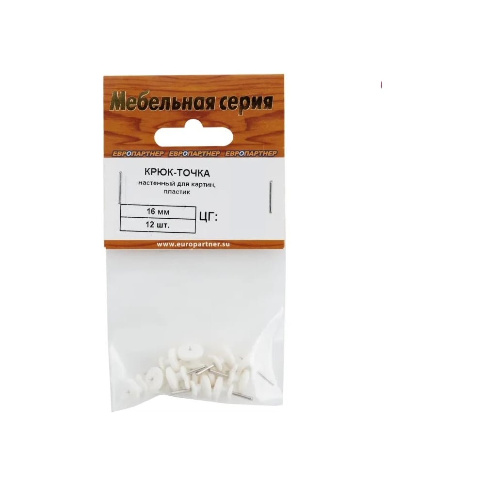 Настенный крюк-точка для картин ЕВРОПАРТНЕР 16 мм, пластик, 12 шт. 16 0494 1