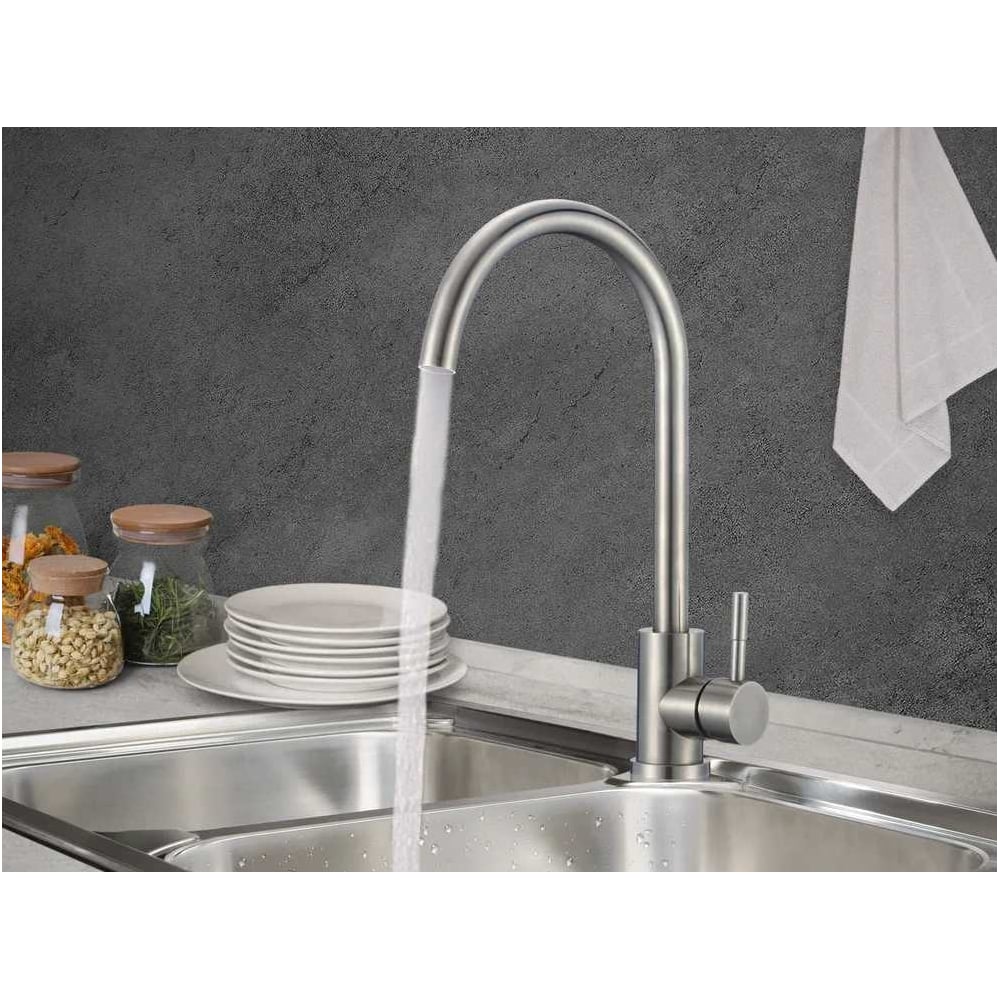 Покрытие матовое Цвет сатин Тип установки настольный Стиль современный Материал корпуса нержавеющая сталь Поворотный излив да Назначение для кухни Тип крепления на гайку Гибкий излив нет Длина излива 200 мм Высота смесителя 370 мм Лейка нет Термостат нет Встраиваемый нет Подводка в комплекте гибкая Аэратор да Переключатель на фильтр нет Тип смесителя однорычажный Форма излива воды традиционная Запорный клапан керамический картридж Форма смесителя округлая Выдвижной излив нет Излив есть Складной нет С щеткой нет Двойной излив нет Диаметр картриджа 35 мм Размер крепления M32 Направление струи вертикальное Диаметр отверстия в раковине 35 мм Расположение термостата без термостата