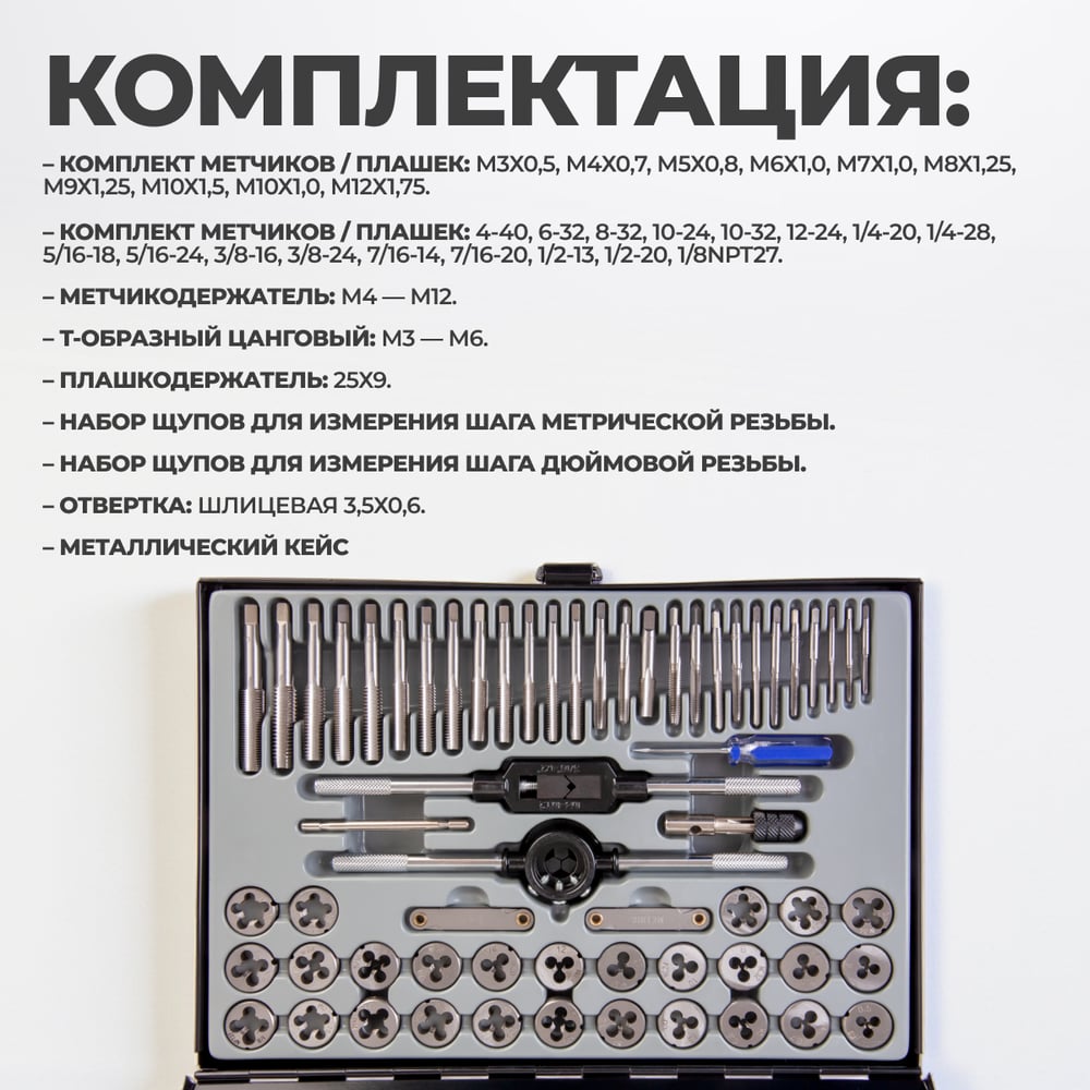 | Комплектация | метчики и плашки |