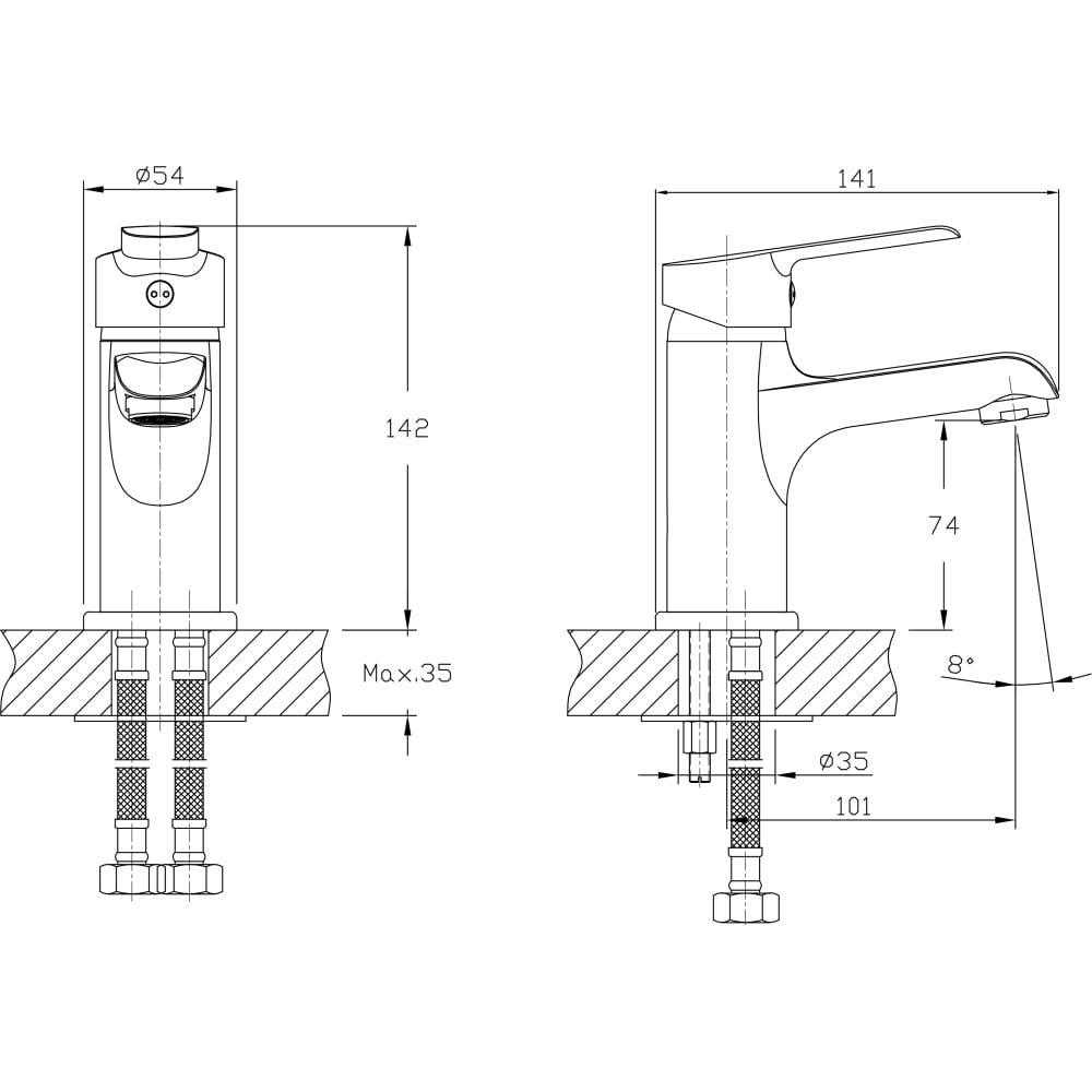 Покрытие глянцевое Цвет хром Тип установки на раковину Вес нетто 1.072 кг Стиль современный Материал корпуса латунь Серия VICTORIA Поворотный излив нет Назначение для умывальника Тип крепления на шпильку Подсветка нет Порционный нет Гигиенический душ (комплект) нет Гибкий излив нет Донный клапан нет Педальный смеситель нет Перелив в комплекте нет Для раковины чаши нет Длина излива 101 мм Высота смесителя 142 мм Лейка нет Встроенная сушка нет Термостат нет С выходом под гигиенический душ нет Встраиваемый нет Подводка в комплекте гибкая Аэратор да Переключатель на фильтр нет Тип смесителя однорычажный Количество монтажных отверстий 1 шт Форма излива воды традиционная Запорный клапан керамический картридж Присоединительный размер 1/2 дюйма Форма смесителя плоская Выдвижной излив нет Излив есть Диаметр картриджа 35 мм Диаметр отверстия в раковине 35 мм Локтевой (хирургический) нет