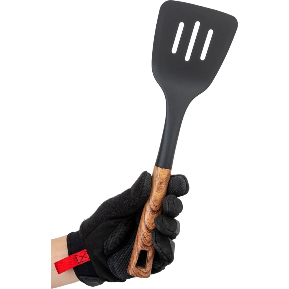 Лопатка Mallony FORESTA с отверстиями из нейлона, с пластиковой ручкой, дизайн под дерево, 33,5x9,8 см 006459