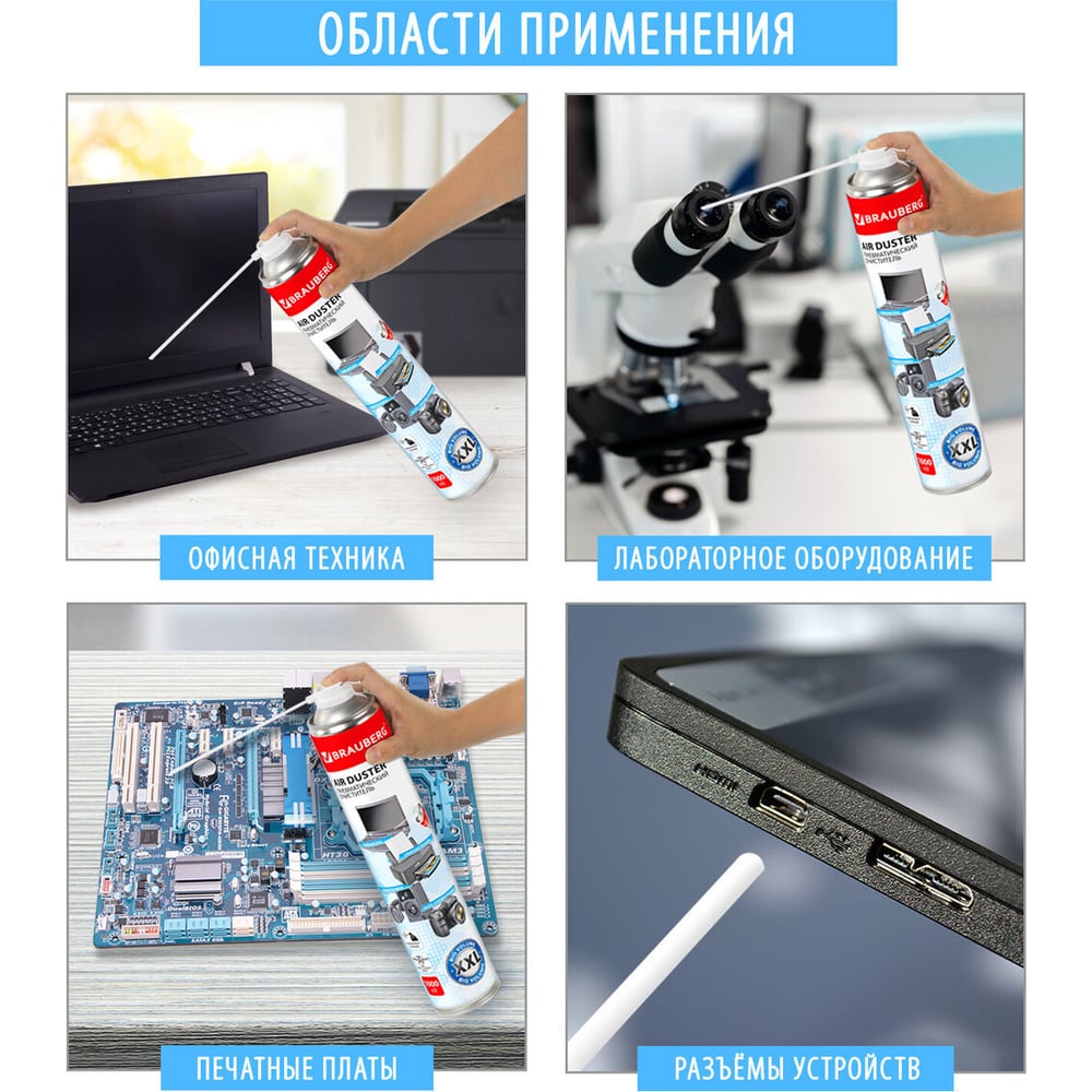 Баллончик со сжатым воздухом для очистки техники BRAUBERG 513317