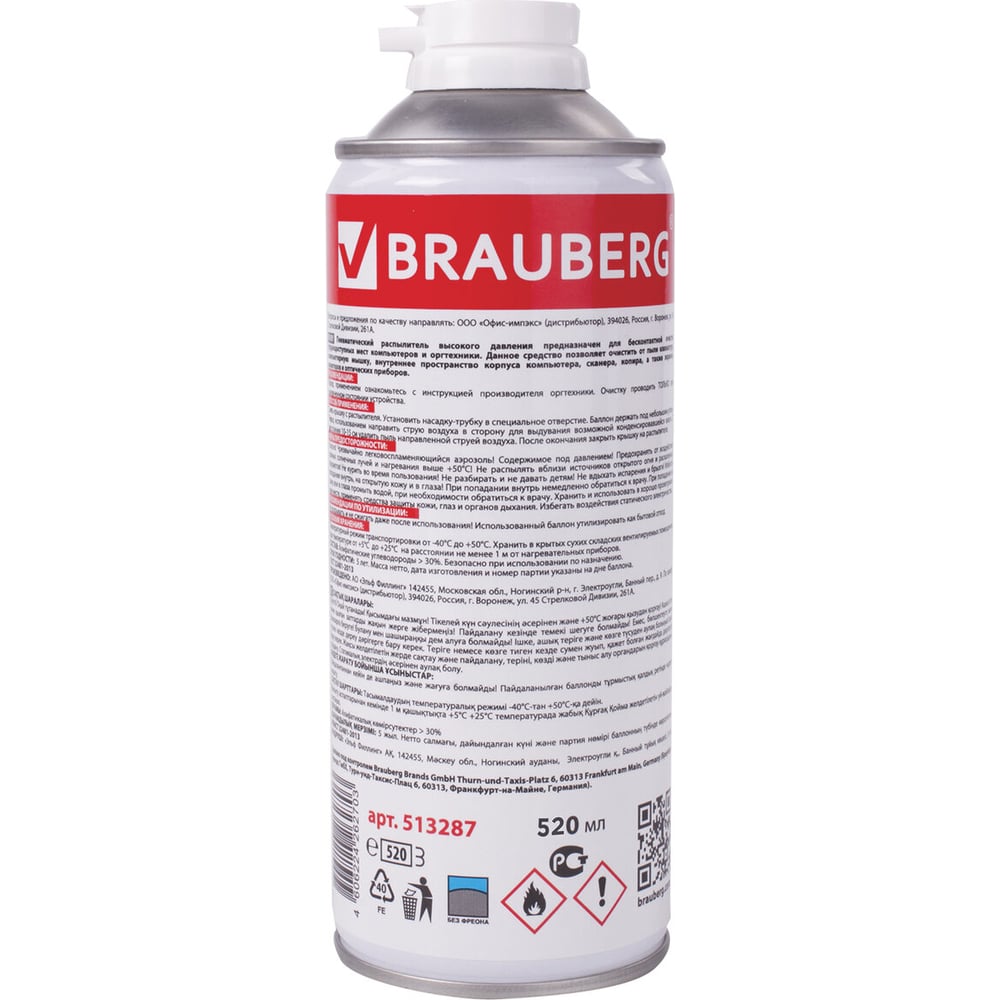 Баллон со сжатым воздухом BRAUBERG для очистки техники, 520 мл 513287