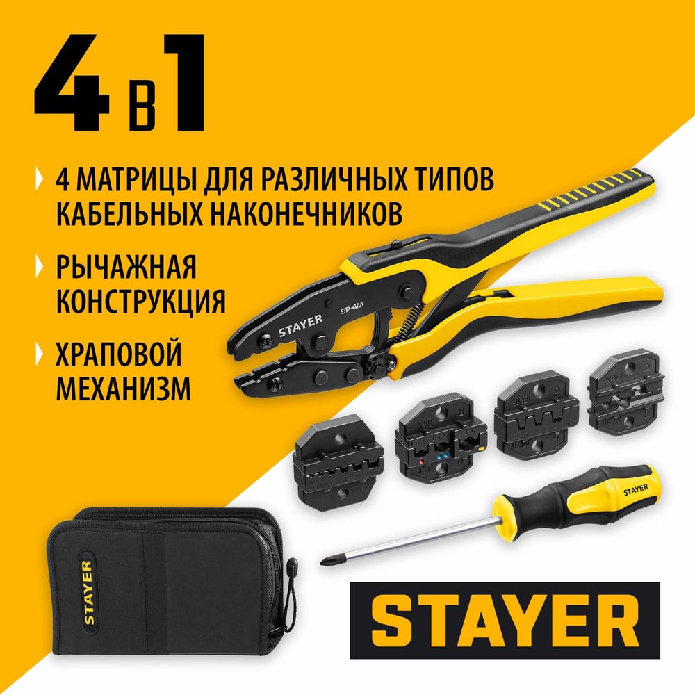 Пресс-клещи для кабельных наконечников STAYER SP-4M 45445