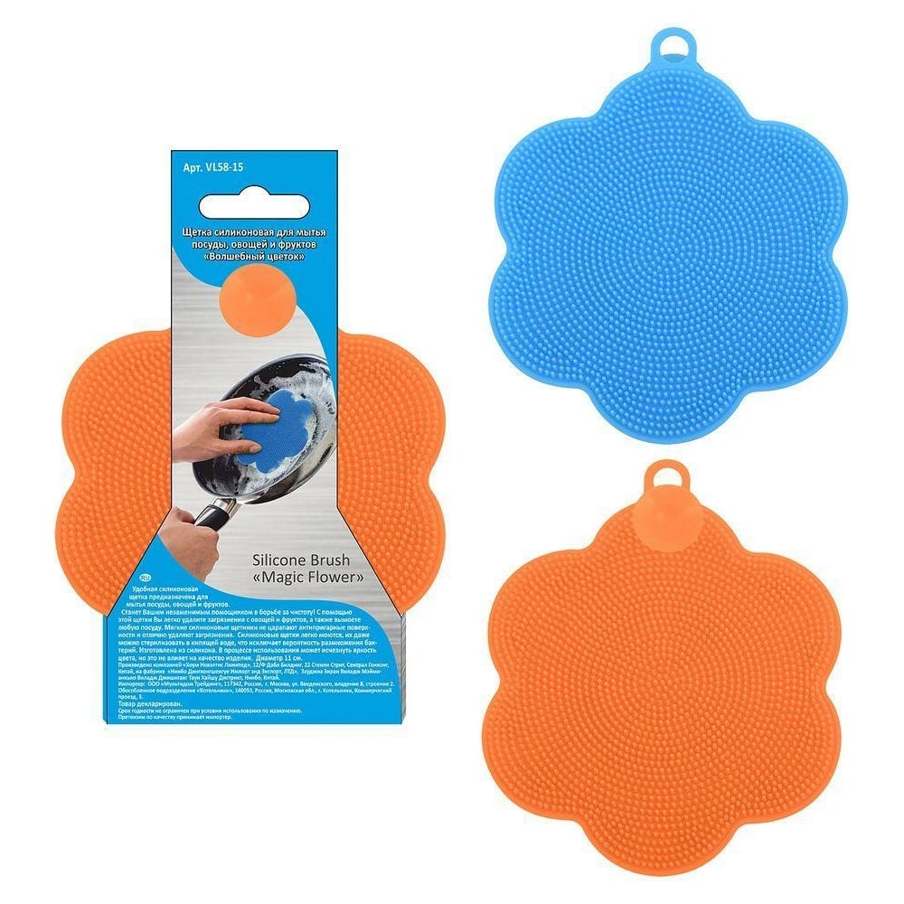 Силиконовая щетка для мытья посуды, овощей и фруктов МУЛЬТИДОМ Волшебный цветок VL58-15