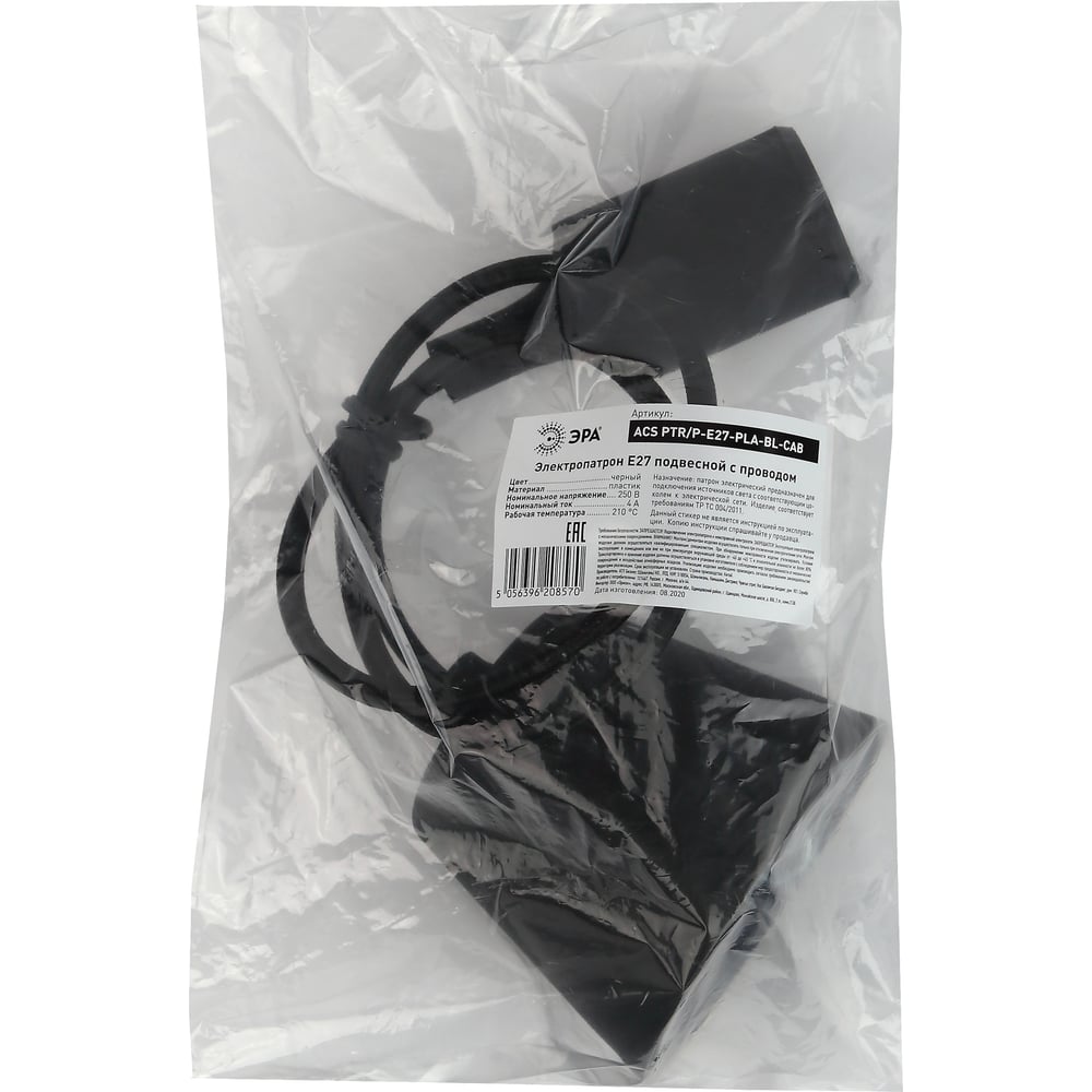 Патрон с подвесом ЭРА Е27, пластиковый, черный, 60/720 Б0048039