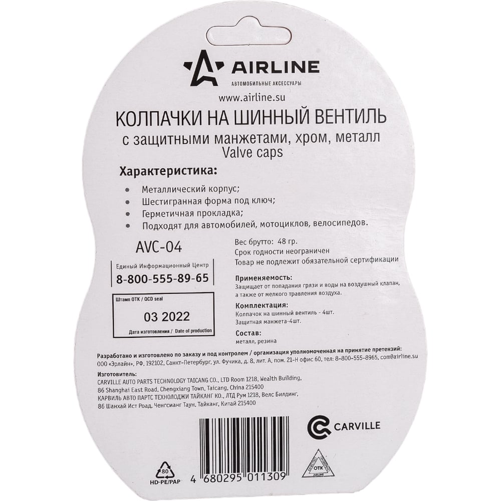 Колпачки на шинный вентиль Airline AVC-04