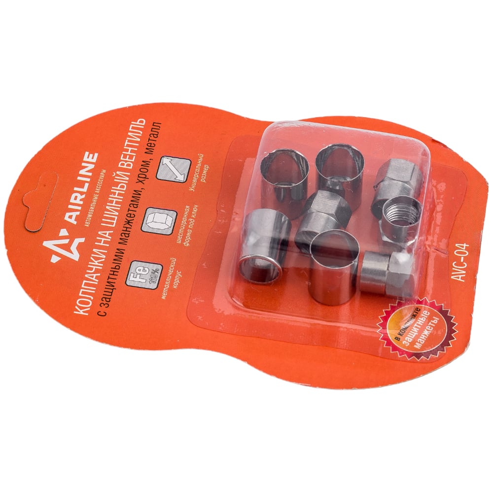 Колпачки на шинный вентиль Airline с защитными манжетами 4+4 шт AVC-04