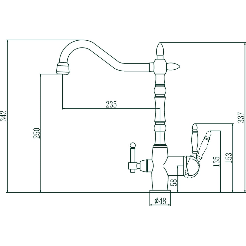 Покрытие эмаль Цвет бежевый Тип установки настольный Стиль ретро Материал корпуса латунь Поворотный излив да Назначение для кухни Тип крепления на гайку Гибкий излив нет Длина излива 235 мм Высота смесителя 337 мм Лейка нет Термостат нет Встраиваемый нет Подводка в комплекте гибкая Аэратор да Переключатель на фильтр нет Тип смесителя однорычажный Форма излива воды традиционная Запорный клапан керамический картридж Форма смесителя округлая Выдвижной излив нет Излив есть Складной нет С щеткой нет Двойной излив нет Диаметр картриджа 40 мм Направление струи вертикальное Диаметр отверстия в раковине 35 мм Расположение термостата без термостата