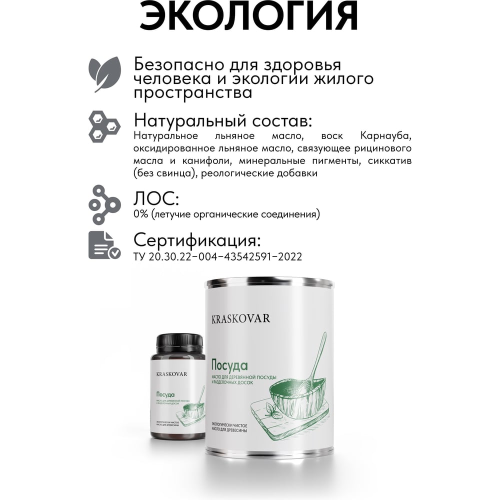 | Состав | натуральное льняное масло, воск Карнауба, оксидированное льняное масло, связующее рицинового масла и канифоли, минеральные пигменты, сиккатив (без свинца), реологические добавки |