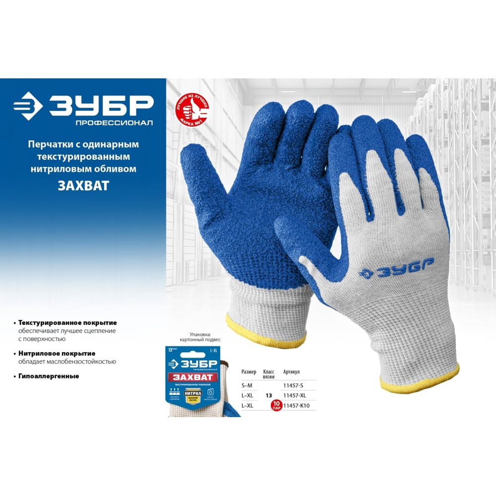 Перчатки ЗУБР Захват 11457-K10