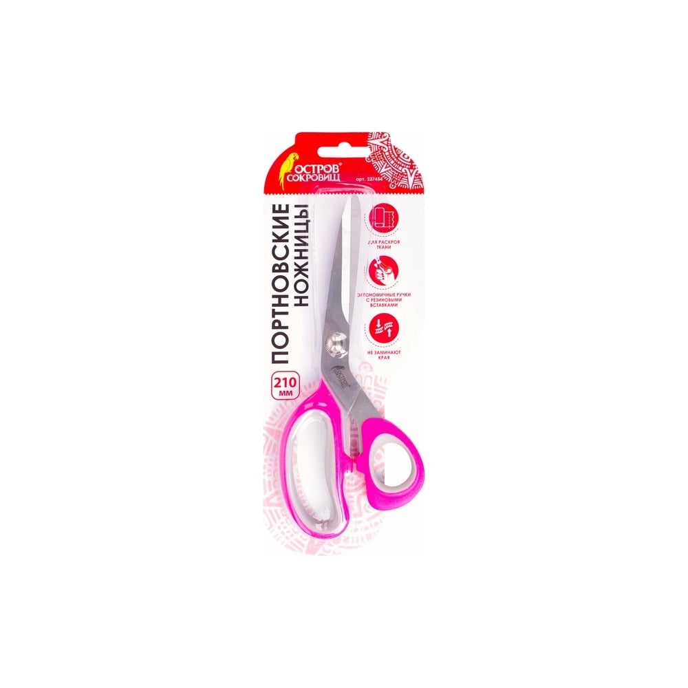 Портновские ножницы ОСТРОВ СОКРОВИЩ ПРЕМИУМ 210 мм, фуксия с резиновыми серыми вставками 237454