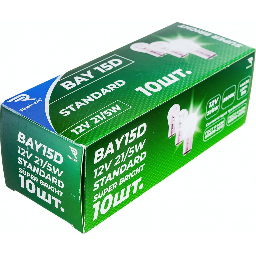 Лампа накаливания Rekzit P21W, 12V21/5W, BAY15D, Standard, круглый контакт 90402