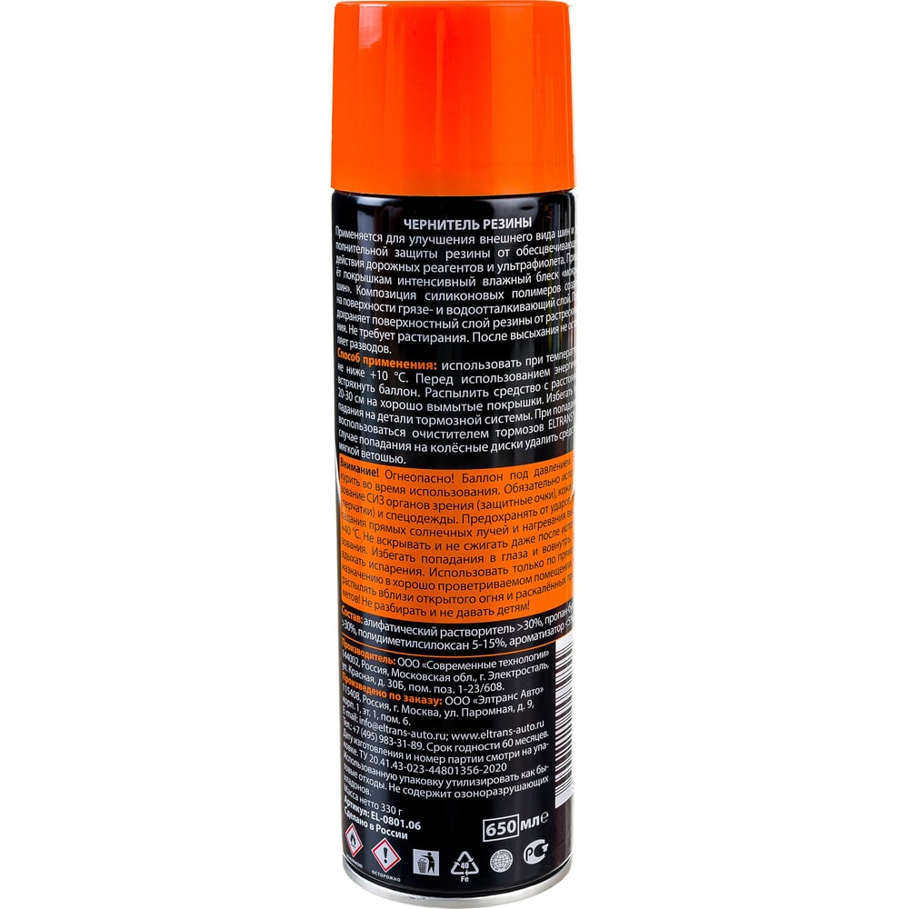 Чернитель резины с силиконом ELTRANS аэрозоль, 650 мл EL-0801.06