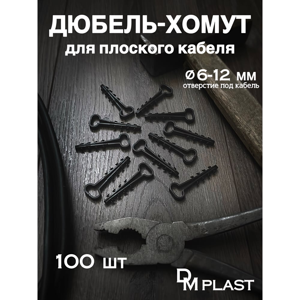 Дюбель-хомут DM PLAST 6-12 для плоского кабеля, чёрный 100шт dx6-12-1dm