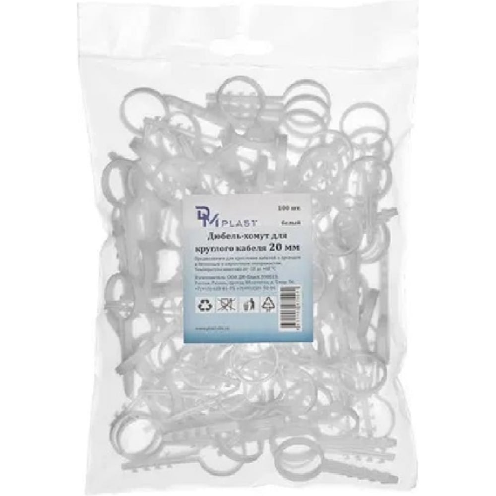 Дюбель-хомут DM PLAST 20 для круглого кабеля, белый, 100 шт dx20dm